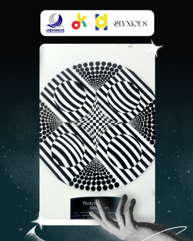Perpaduan seimbang antara titik, garis dan bidang pada canvas lingkaran