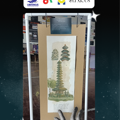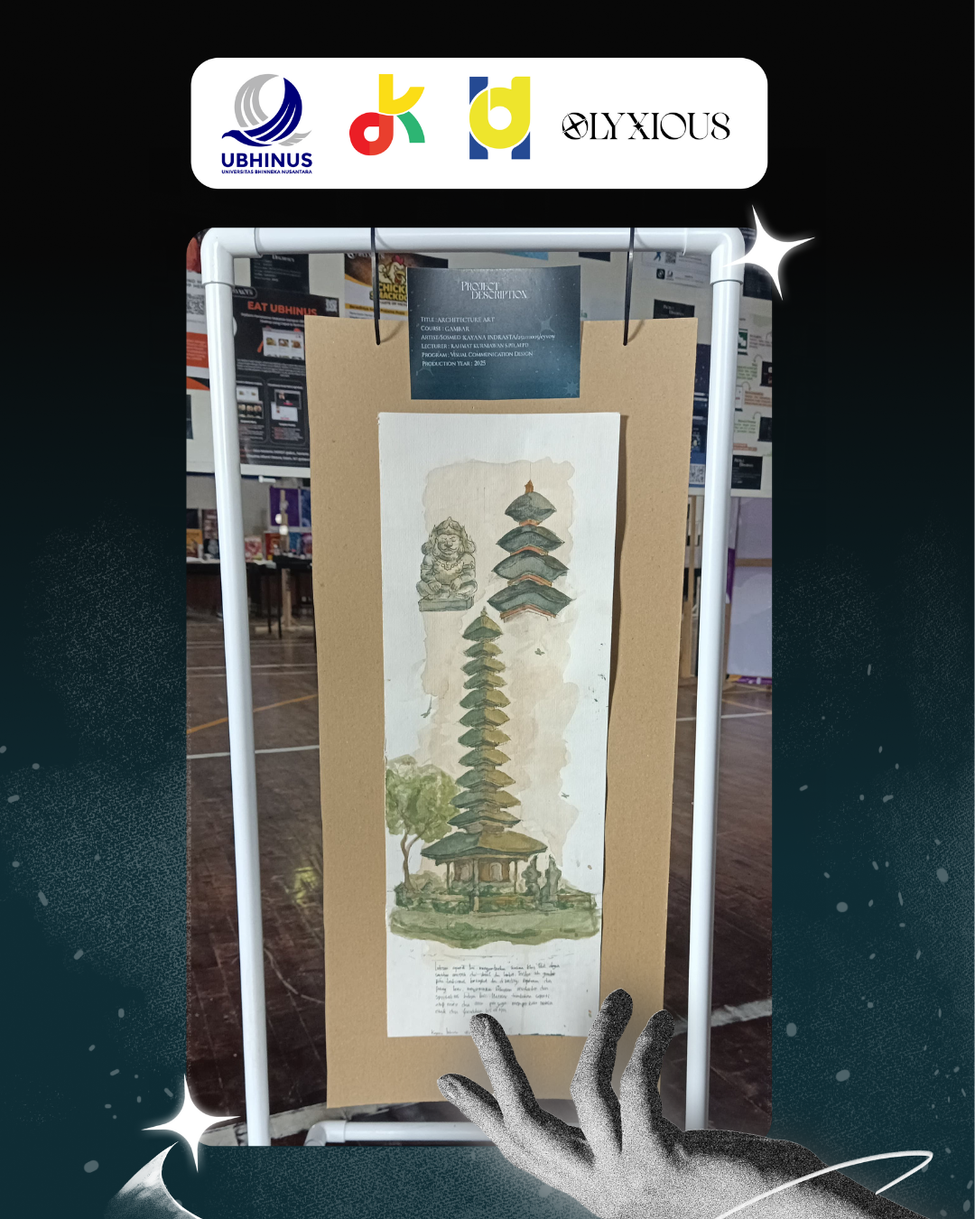 gambar ini mengilustrasikan sebuah pure khas bali yang bernama pure ulun danau dan ada patung buto sebagai elemen tambahan pada gambar