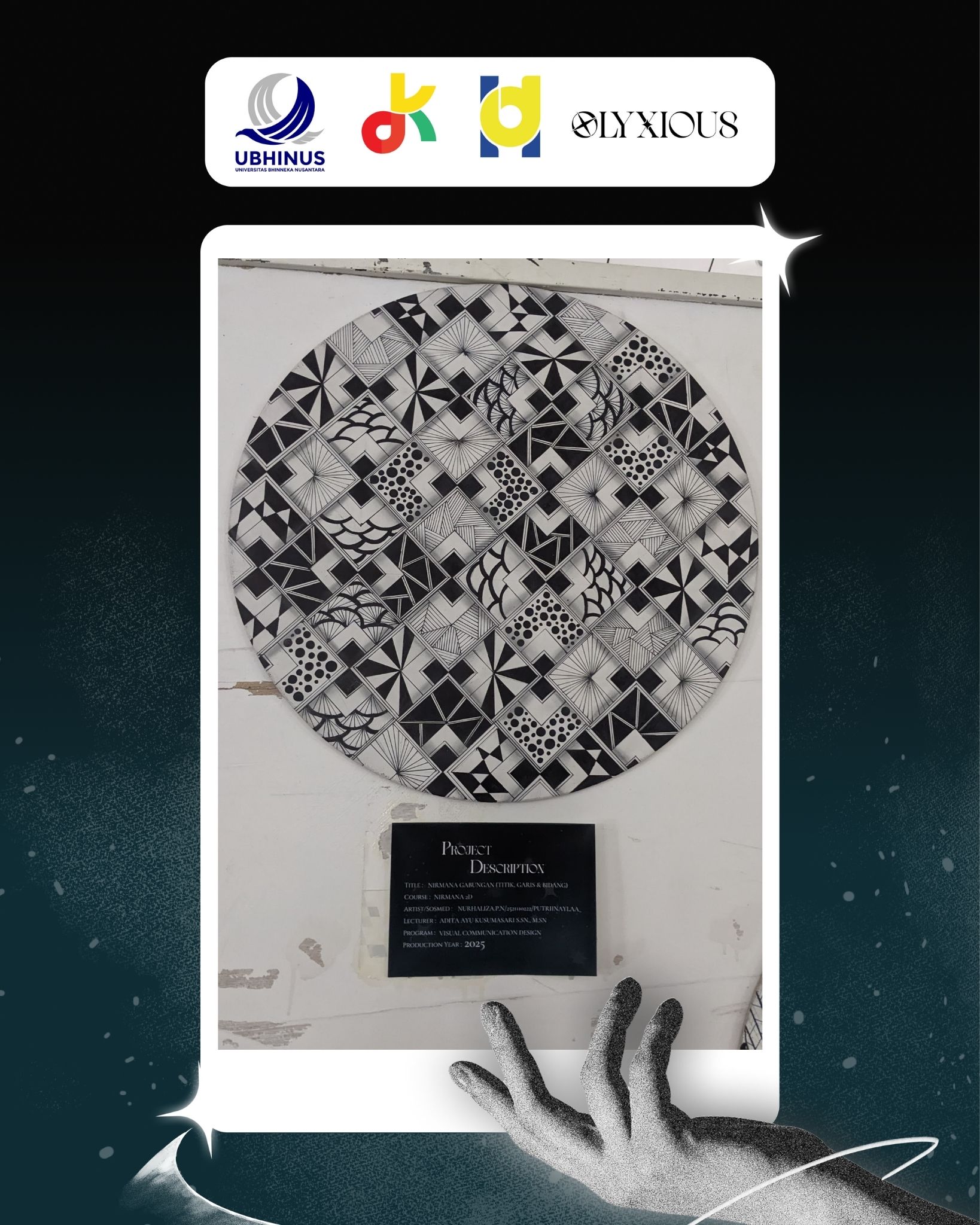 Nirmana 2D (Titik, Garis, Bidang) yang dibuat di atas papan MDF.