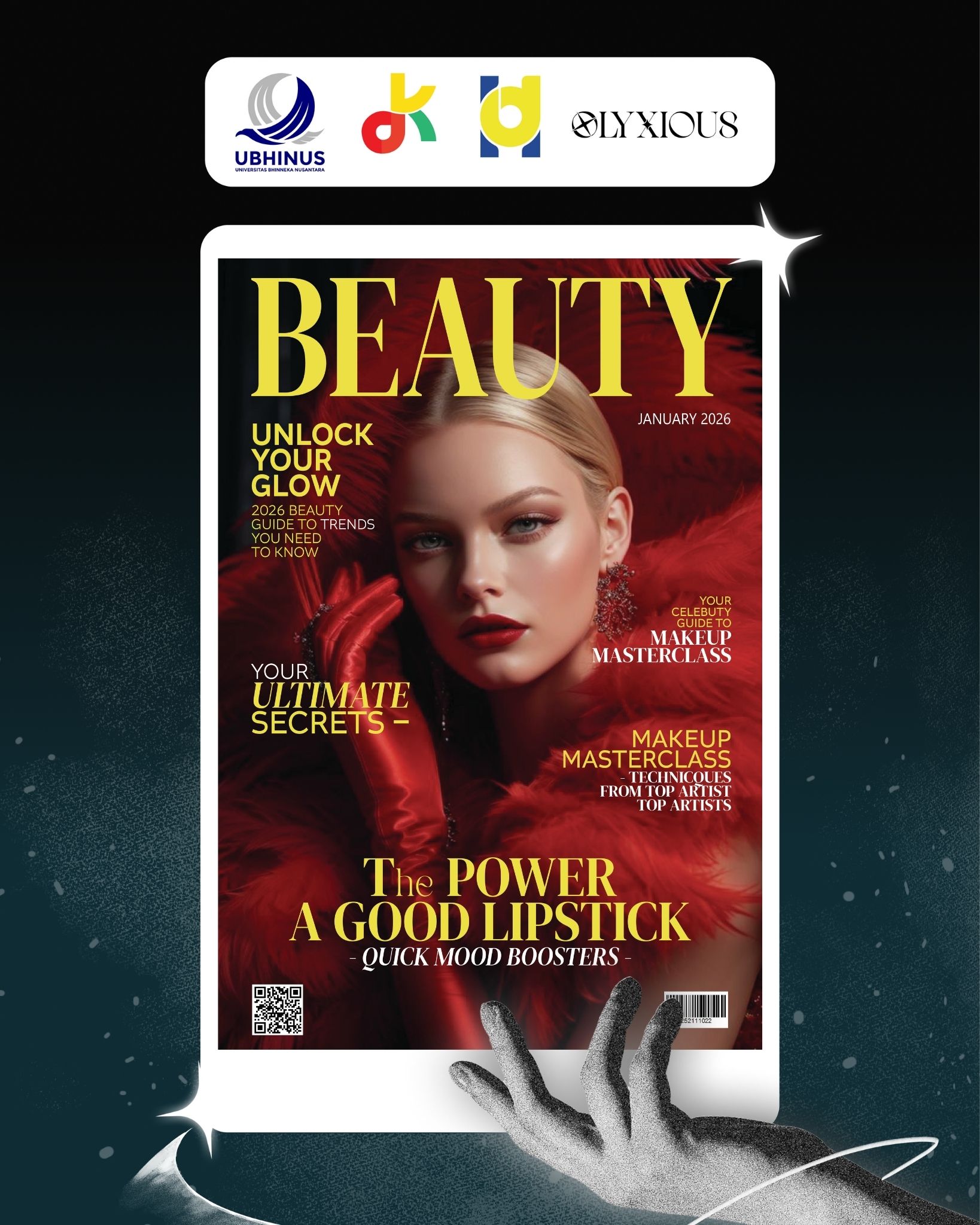 Design Cover majalah yang dibuat dengan teknik digital dengan subjek BEAUTY, The Power A Good Lipstik