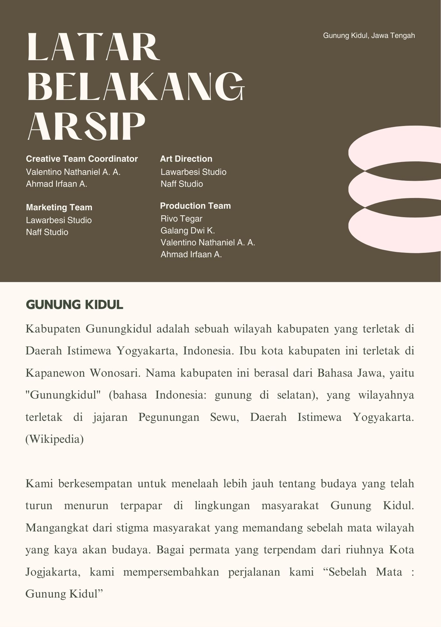 Majalah yang berisikan tentang perjalanan kami dalam mengobservasi kesenjangan budaya di Gunung Kidul dan Yogyakarta.